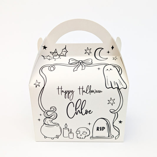 HALLOWEEN Scary Witch Cat Bat Illustrations Personalised Children’s Party Box Gift Bag Favour