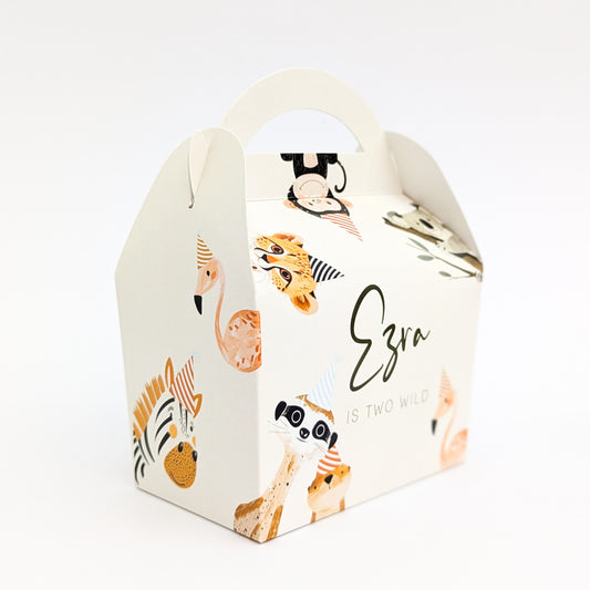 Jungle Animals Boho Minimal Personalised Children’s Party Box Gift Bag Favour