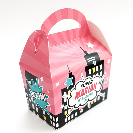 Comic Book Superhero Girls Personalised Children’s Party Box Gift Bag Favour