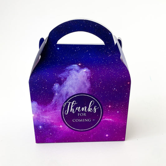 Space rockets galaxy Personalised Children’s Party Box Gift Bag Favour