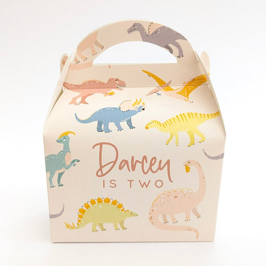 DINOSAURS Pastel Personalised Children’s Party Box Gift Bag Favour