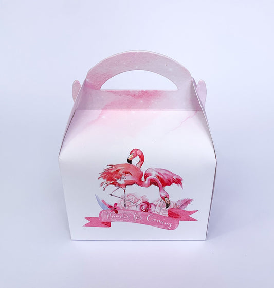 Flamingo watercolour Personalised Children’s Party Box Gift Bag Favour