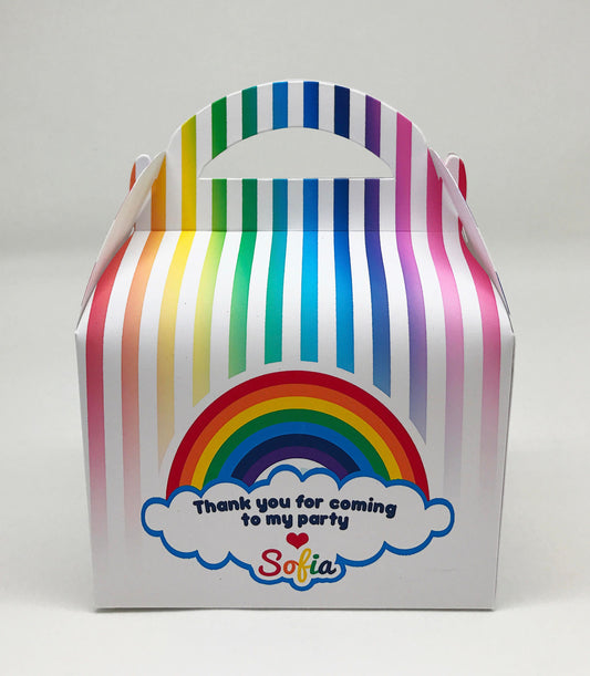 Various Rainbow Personalised Children Party Boxes Gift Favour