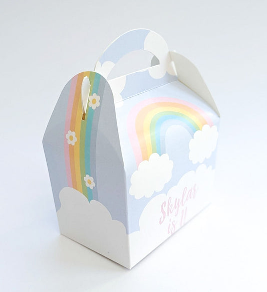 RAINBOW Pastel Pretty Personalised Children’s Party Box Gift Bag Favour
