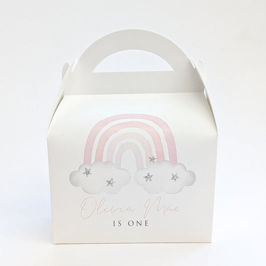 RAINBOW Minimal Baptism Christening First Birthday Personalised Children’s Party Box Gift Bag Favour