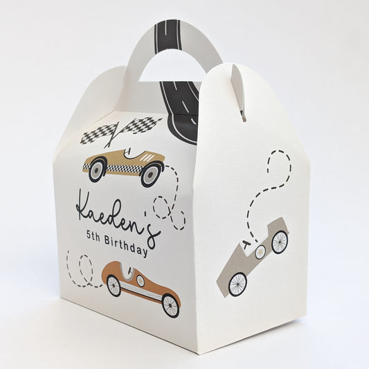 NEUTRAL Retro Cars Racing Driver Personalised Children’s Party Boxes Gift Bag Favour