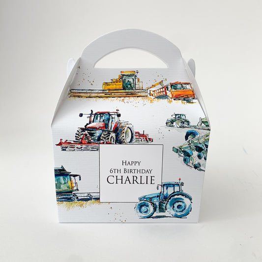Tractor farming machinery and equipment Personalised Children’s Party Box Gift Bag Favour