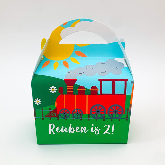 STEAM TRAIN Trains transport Personalised Children’s Party Box Gift Bag Favour