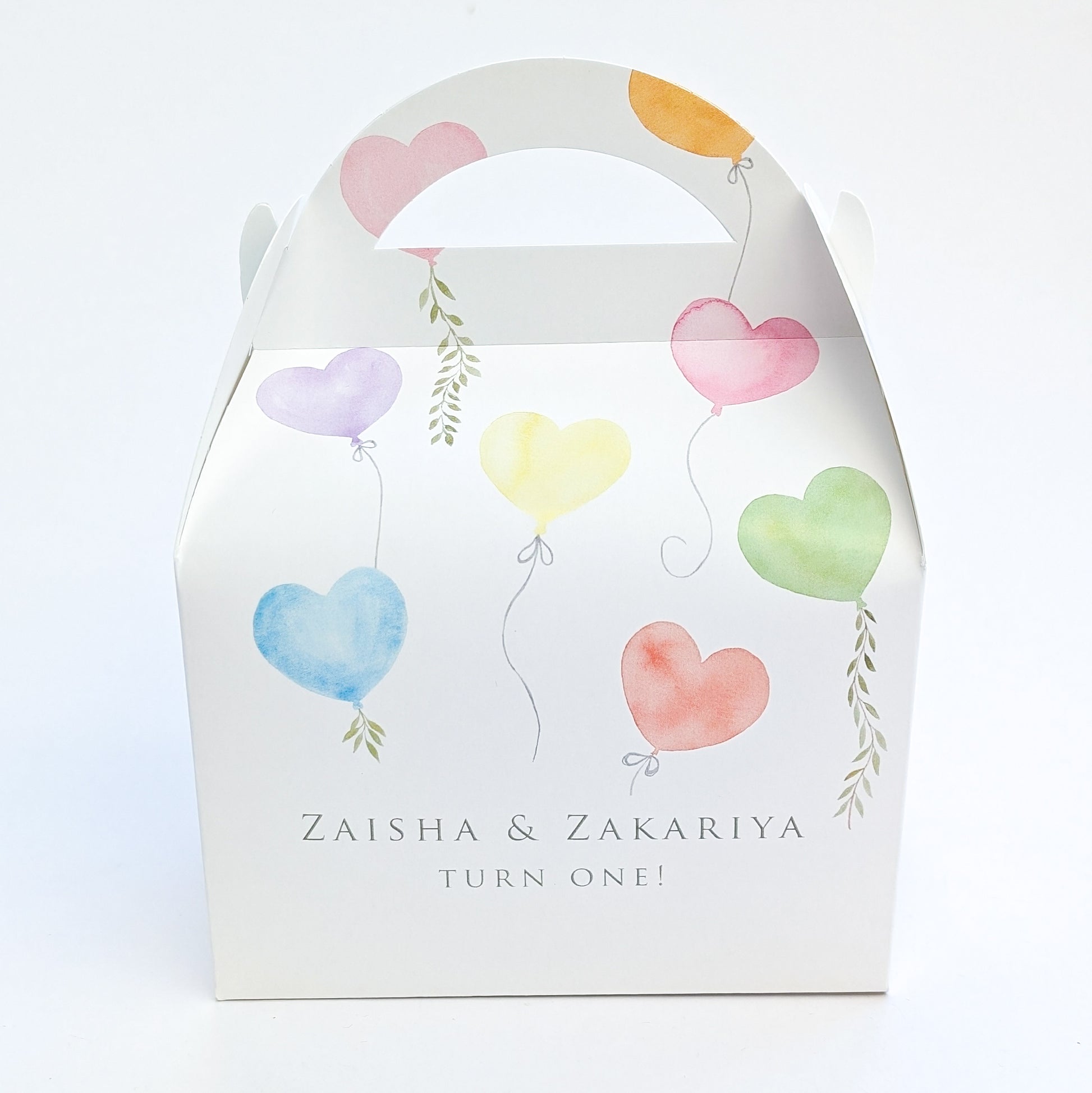 RAINBOW HEARTS Balloond Unisex Personalised Children’s Party Box Gift Bag Favour