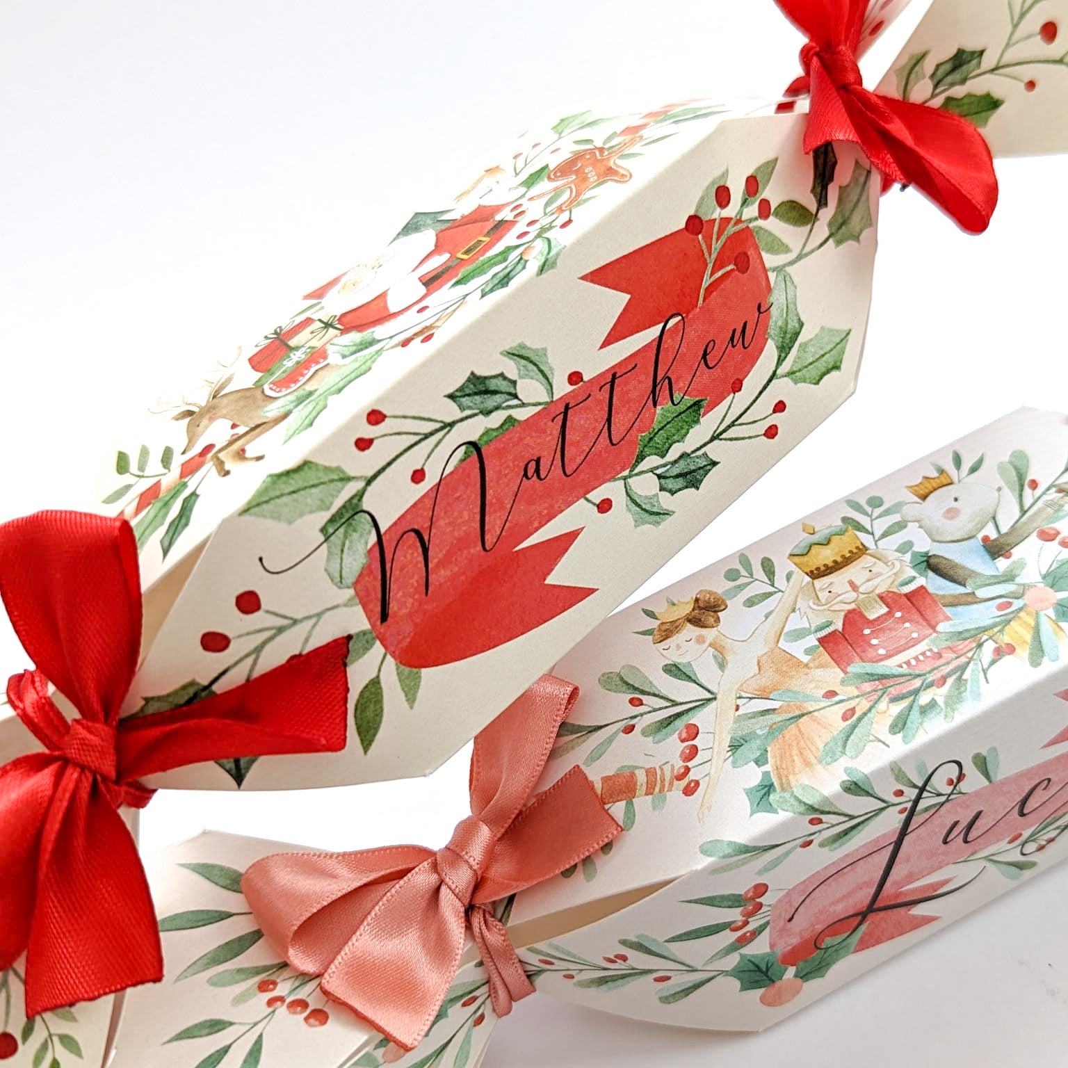 These beautiful Christmas crackers personalised with your guest's name, add a special touch to any Christmas table. They come in a range of designs to complement your chosen colour palette and Christmas theme and are ready for you to fill with little trinkets and treats.