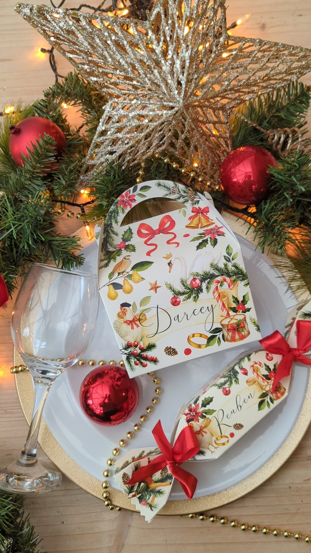 These beautiful Christmas crackers personalised with your guest's name, add a special touch to any Christmas table. They come in a range of designs to complement your chosen colour palette and Christmas theme and are ready for you to fill with little trinkets and treats.