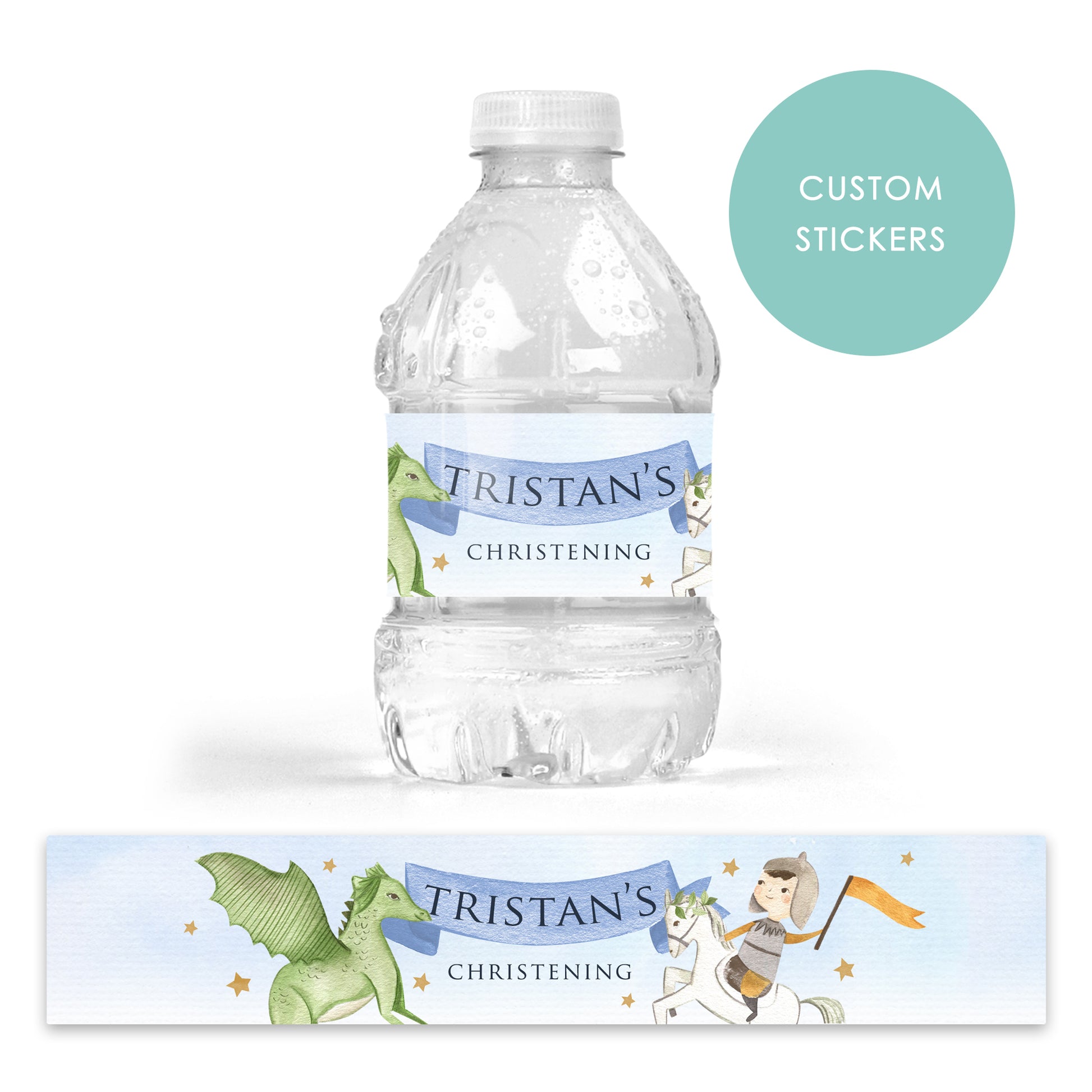 DRINK LABEL STICKERS x 7 Personalised Knights and Dragons Prince