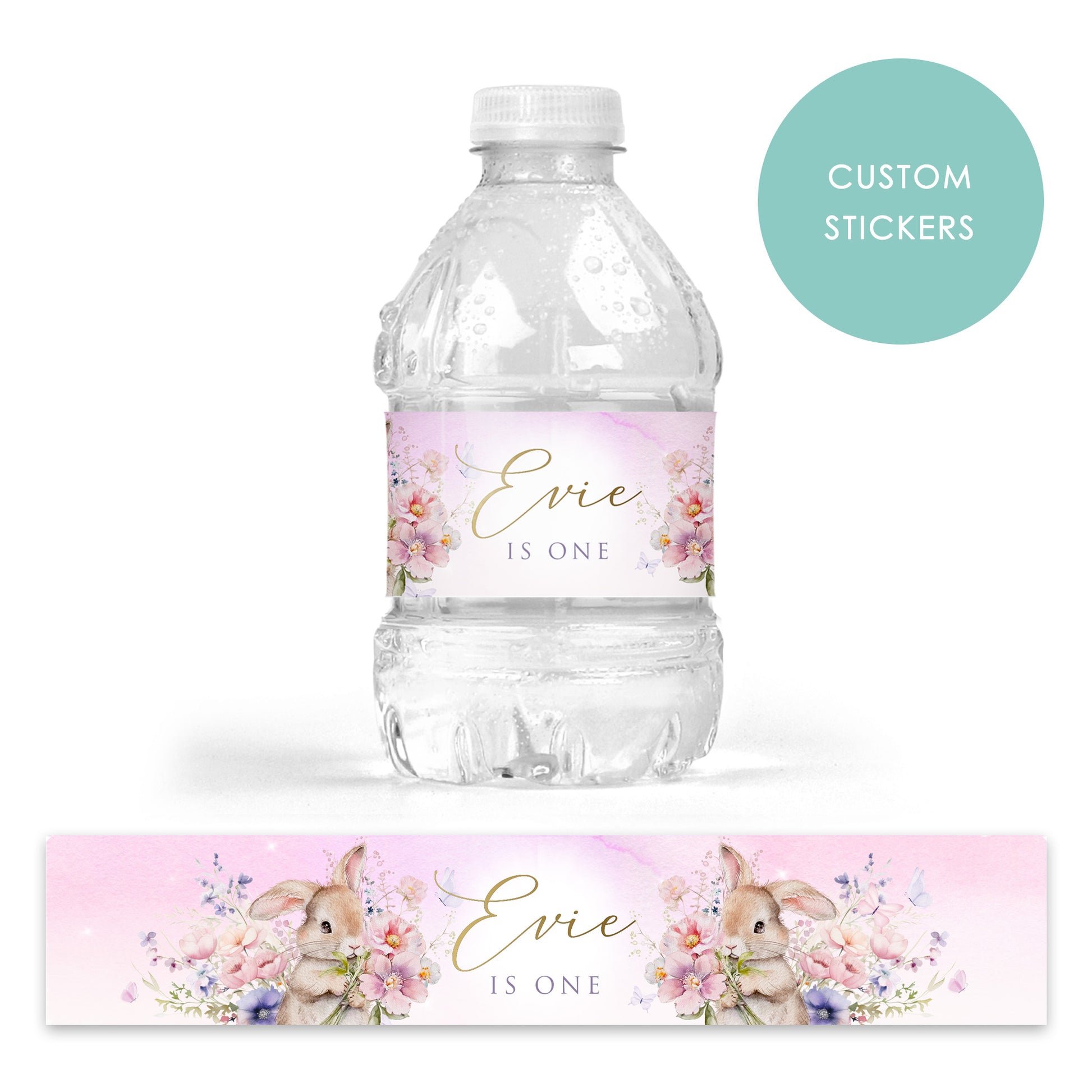 DRINK LABEL STICKERS x 7 Personalised Pink Bunny Rabbit Spring