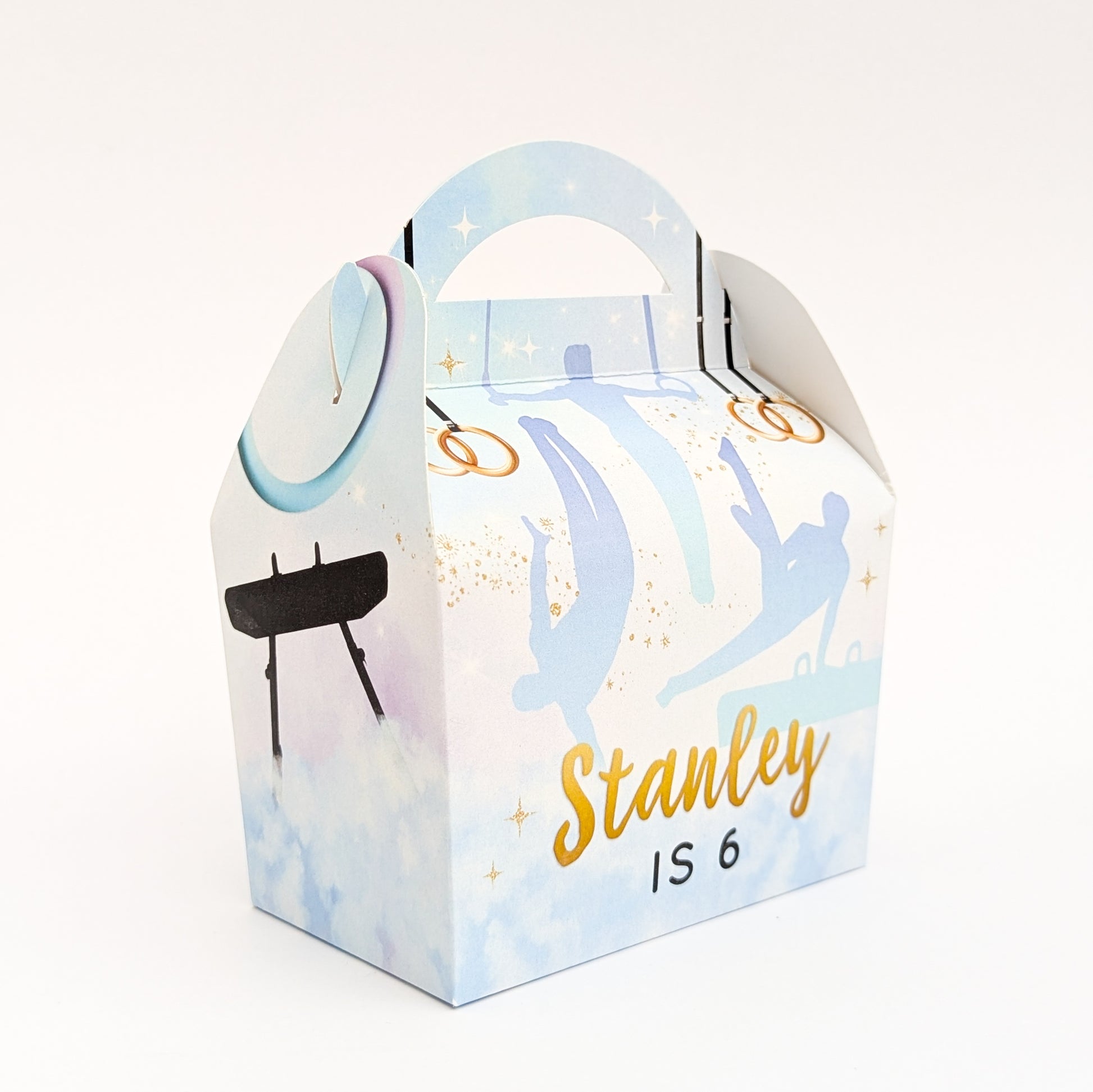 Gymnastics Male Boys Personalised Children’s Party Box Gift Bag Favour