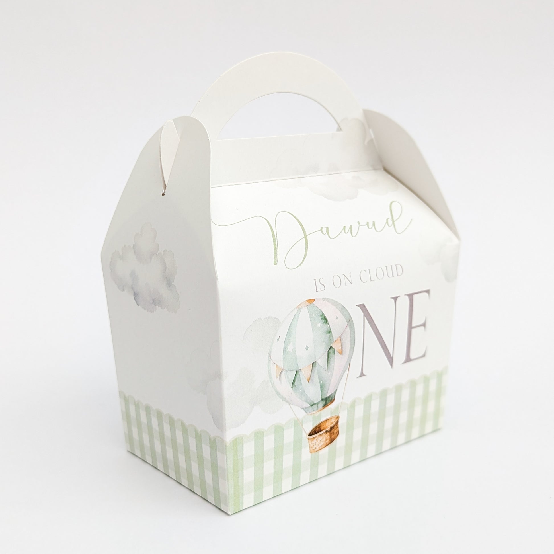 ONEderful Hot Air Balloons Green Personalised Children’s Party Box Gift Bag Favour