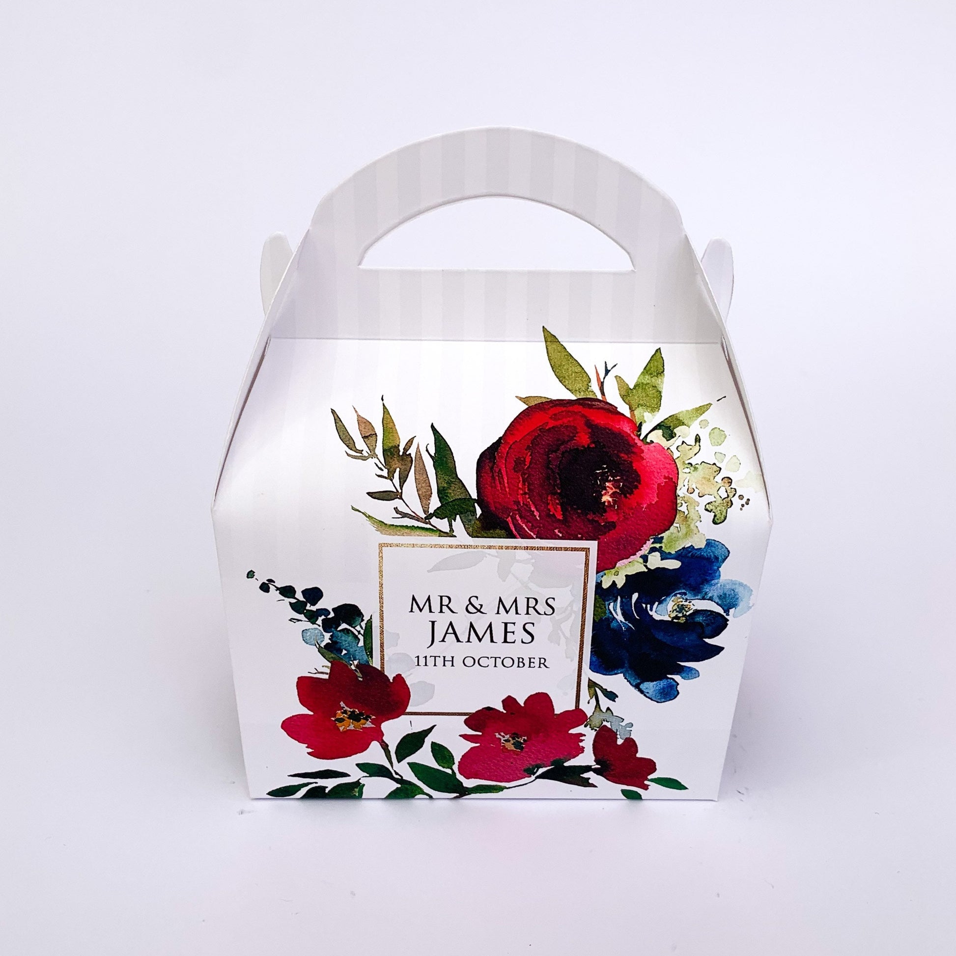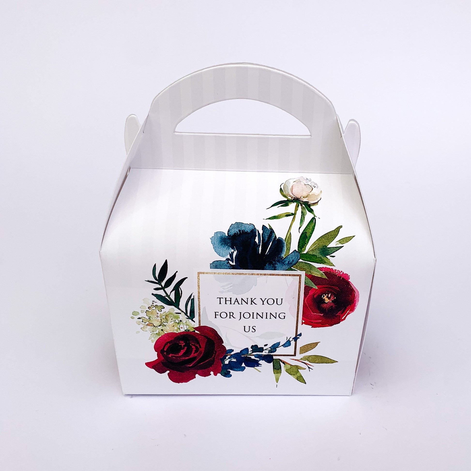 WEDDING Red and Navy Floral Wedding Favour Boxes Hen Party Bridal Shower Gift Box