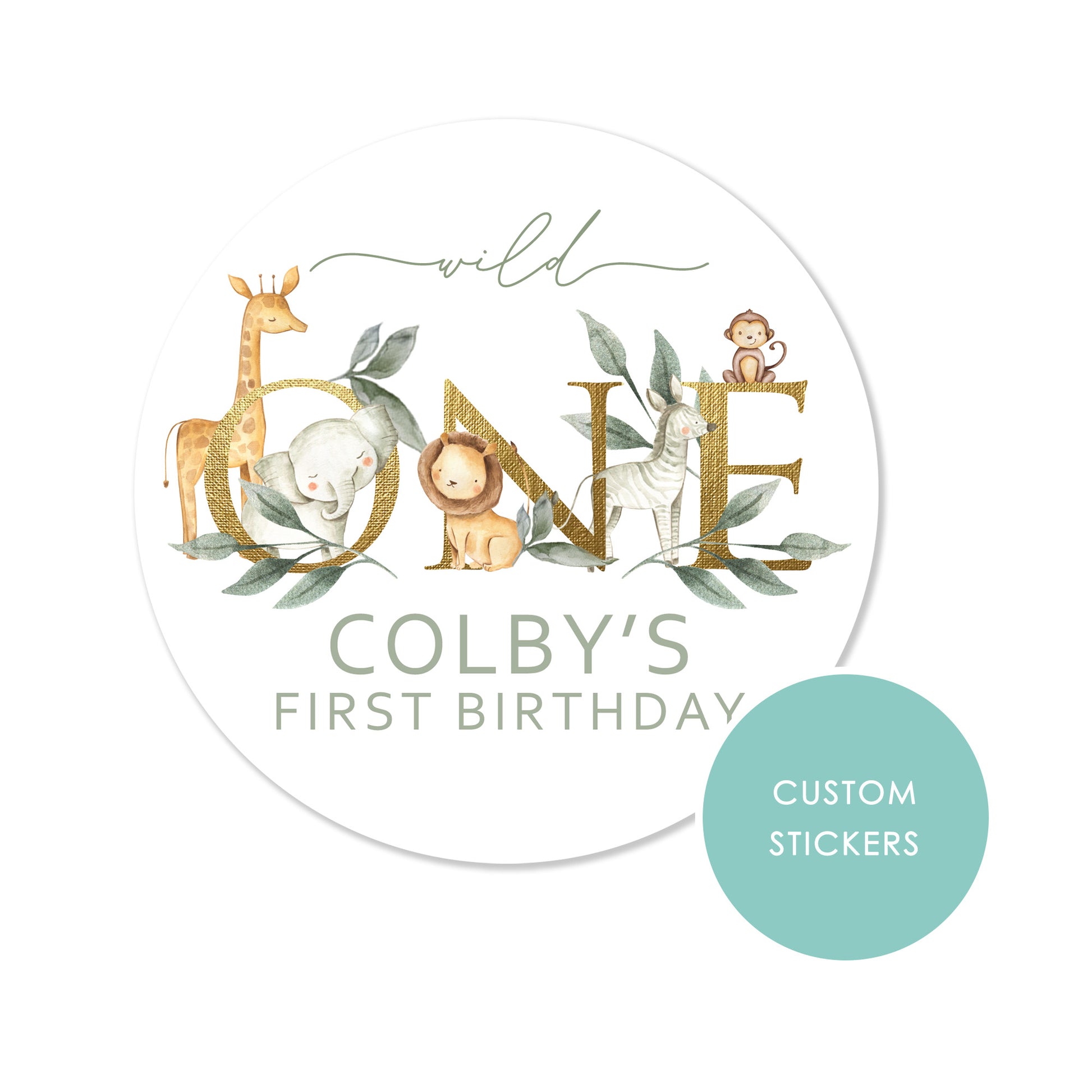 PERSONALISED STICKERS Multiple sizes Personalised Jungle Wild One Sweet Cone Gift label