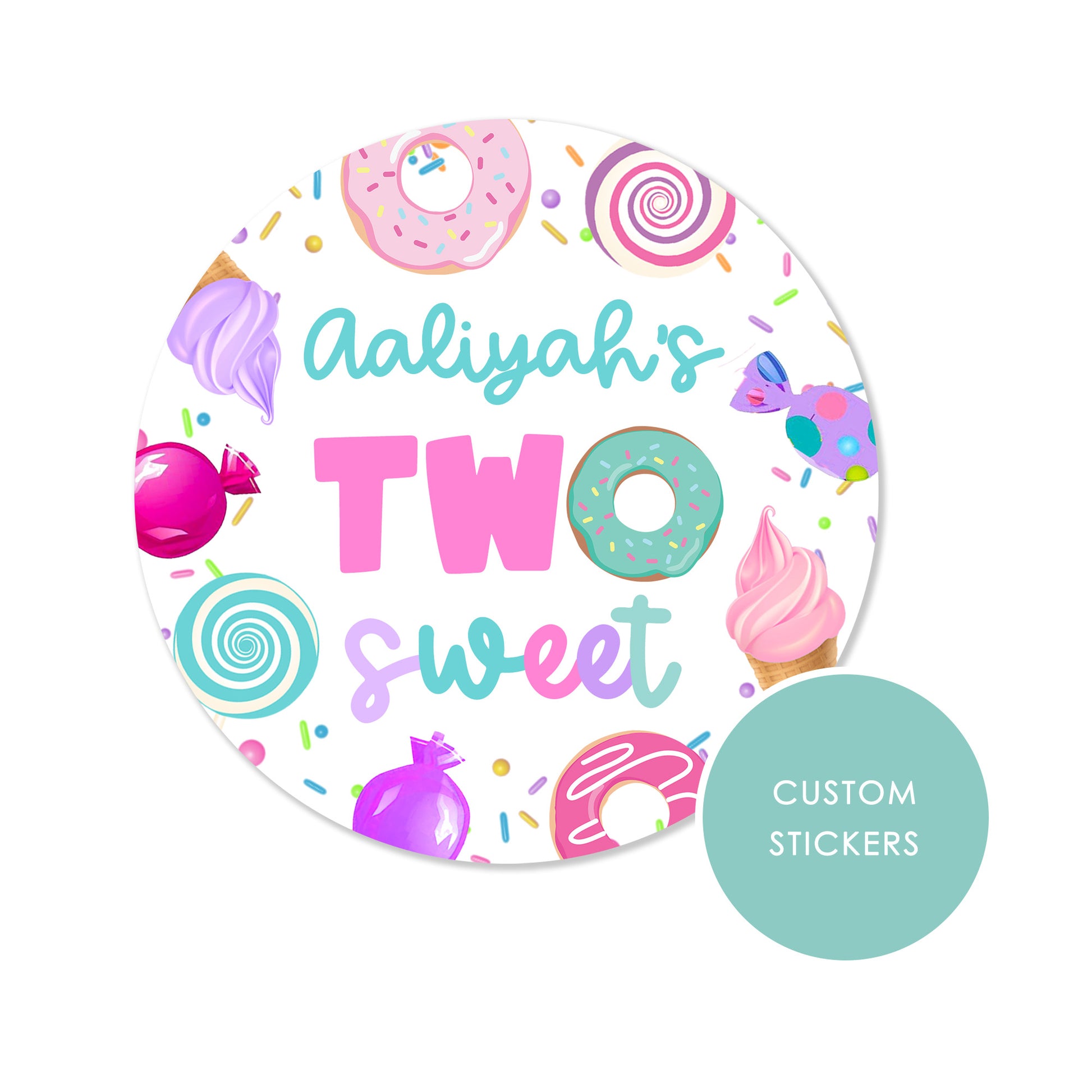 PERSONALISED STICKERS Multiple sizes Personalised Two Sweet Candy Sweet Cone Gift label