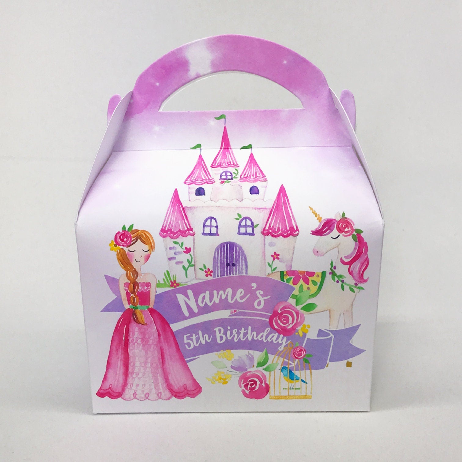 Princesses and Unicorns Watercolour Personalised Children’s Party Box Gift Bag Favour