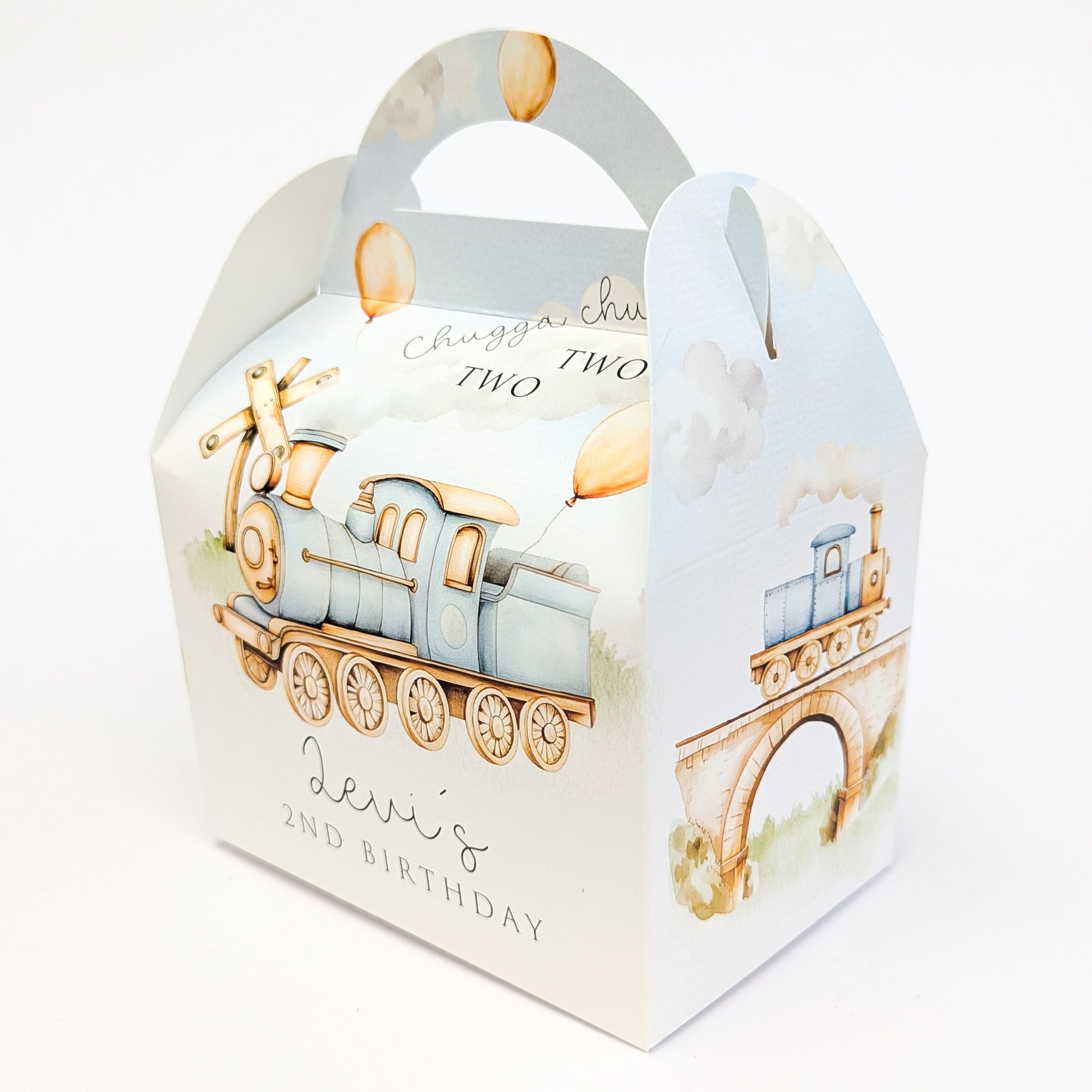 STEAM TRAIN Trains transport Personalised Children’s Party Box Gift Bag Favour