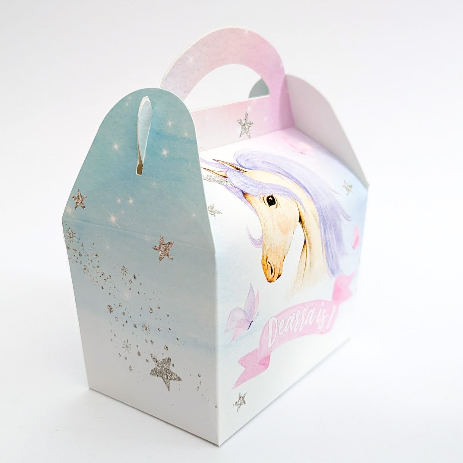 UNICORN Fantasy Watercolour Personalised Children’s Party Box Gift Bag Favour