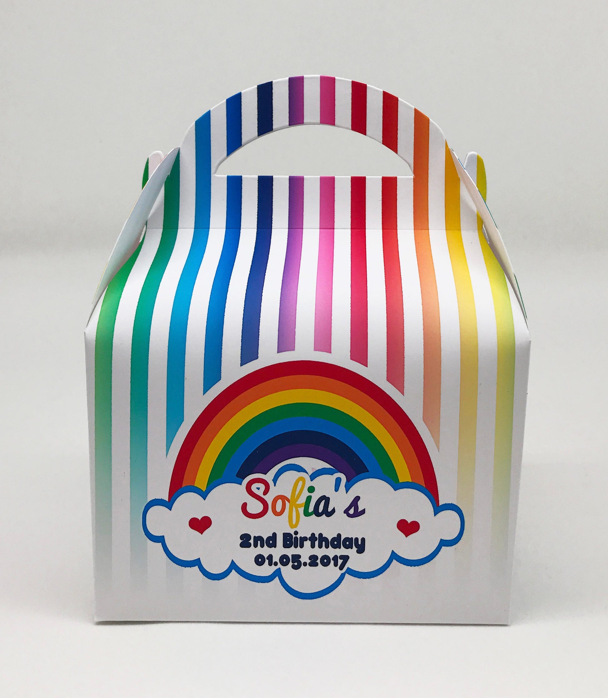 Various Rainbow Personalised Children Party Boxes Gift Favour