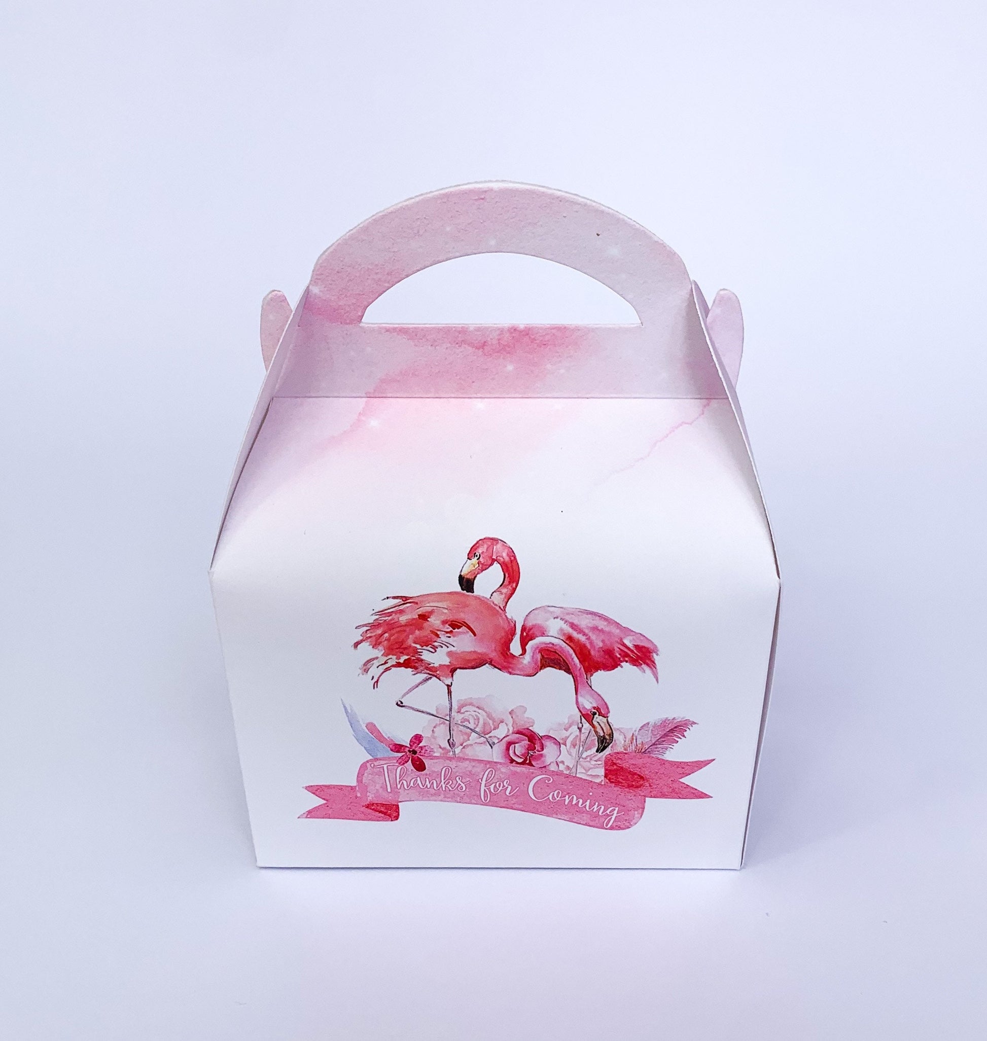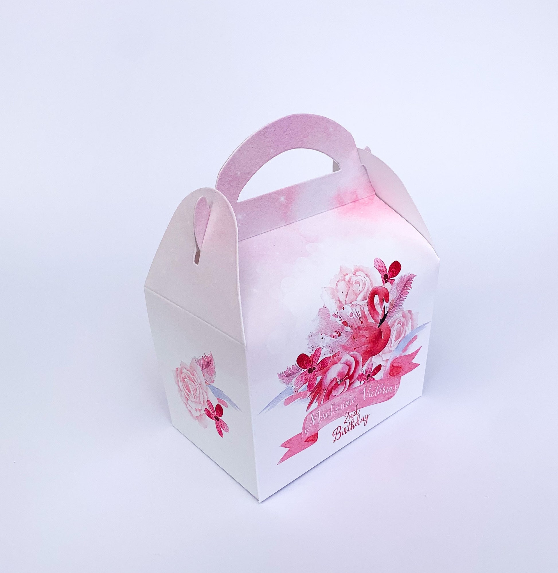 Watercolour floral flamingos Personalised Children’s Party Box Gift Bag Favour